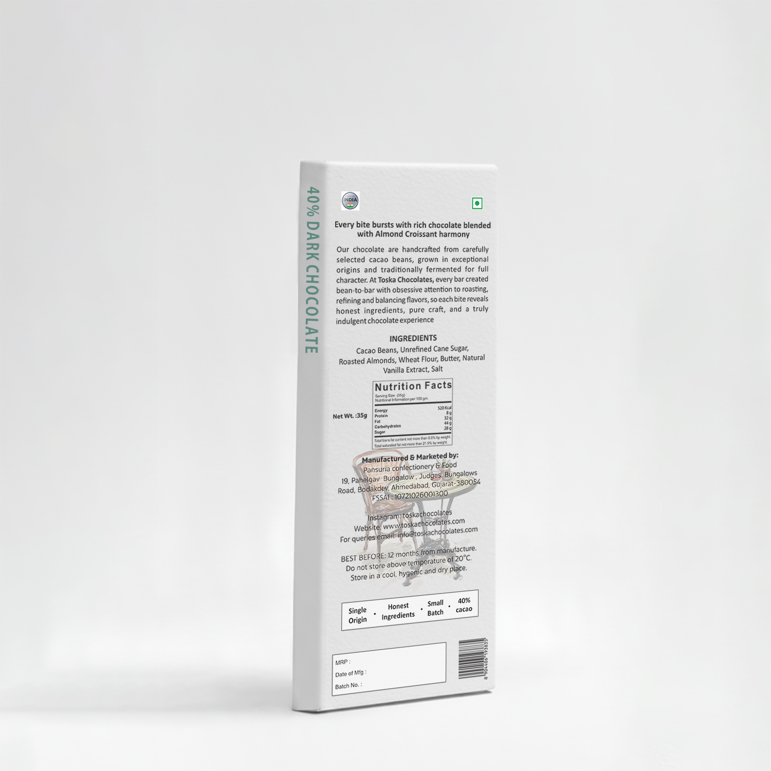 An ode to the charm of Parisian mornings, the Paris Boulevard 40% Dark Chocolate Bar blends the elegance of a buttery almond croissant with the richness of smooth dark chocolate. Crafted with 40% dark cacao, it carries notes of roasted almonds, caramelized warmth, and the gentle sweetness of a patisserie indulgence. Luxurious, velvety, and irresistibly comforting — a stroll down a Paris boulevard, captured in chocolate.